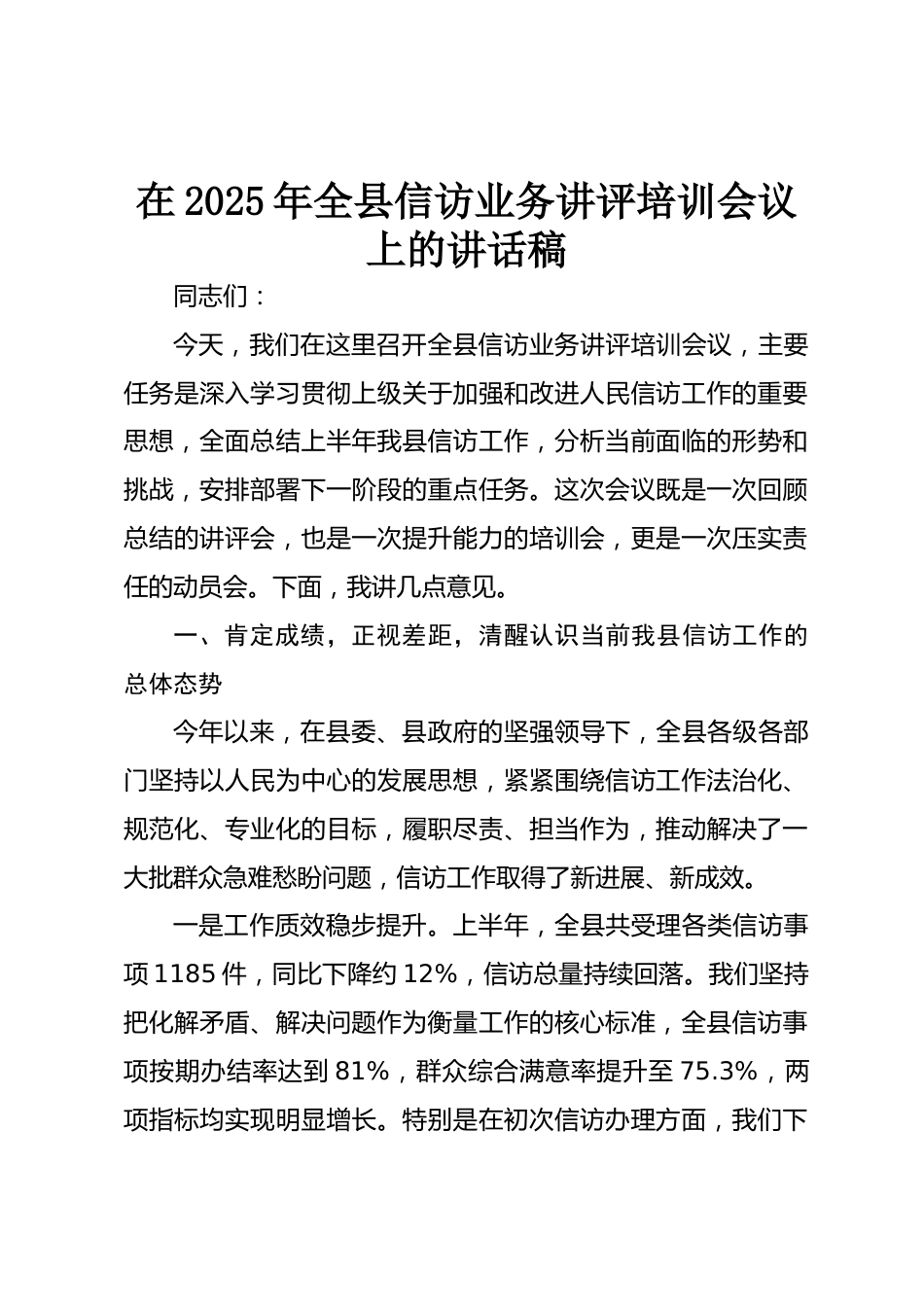 在2025年全縣信訪業(yè)務(wù)講評培訓(xùn)會議上的講話稿