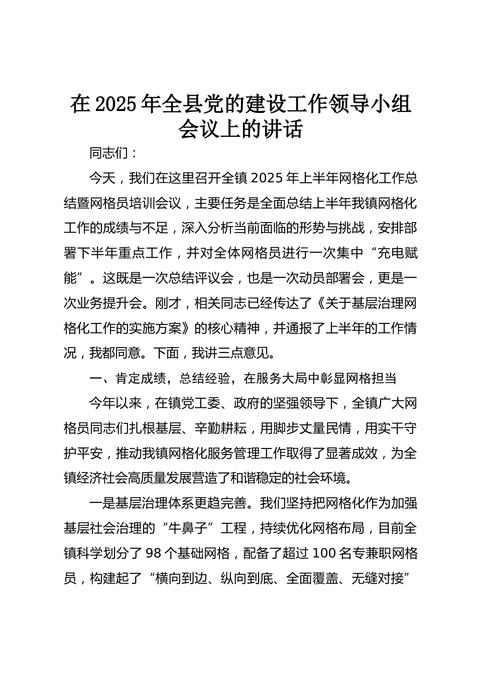 在2025年全縣黨的建設(shè)工作領(lǐng)導(dǎo)小組會議上的講話VIP免費