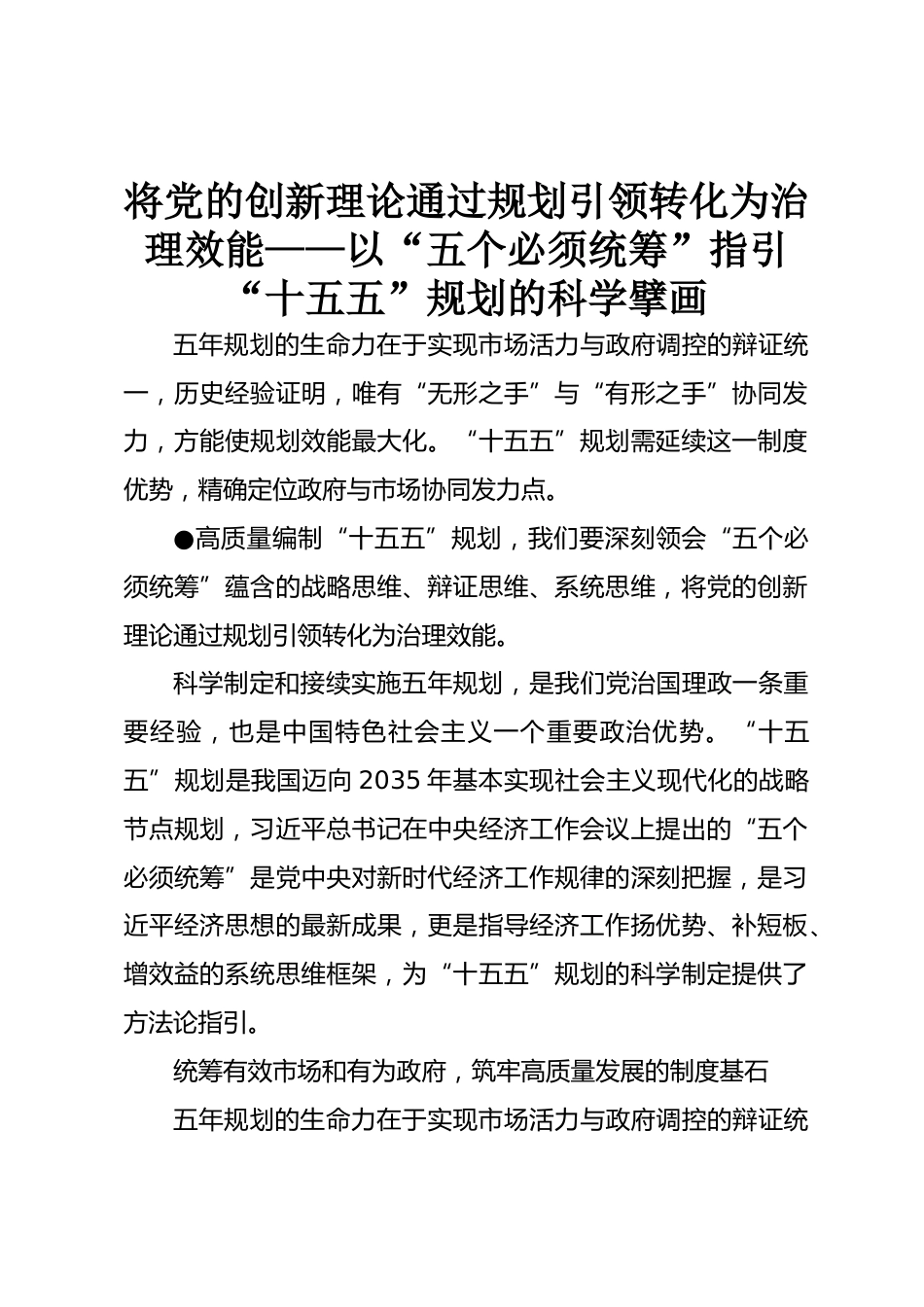 將黨的創(chuàng)新理論通過規(guī)劃引領(lǐng)轉(zhuǎn)化為治理效能——以“五個(gè)必須統(tǒng)籌”指引“十五五”規(guī)劃的科學(xué)擘畫