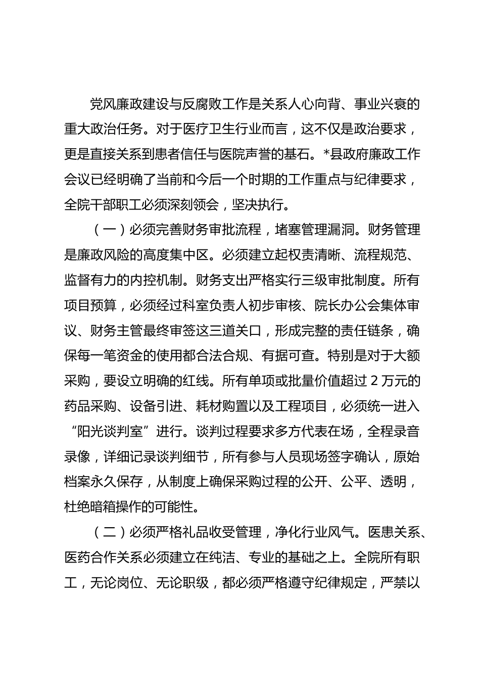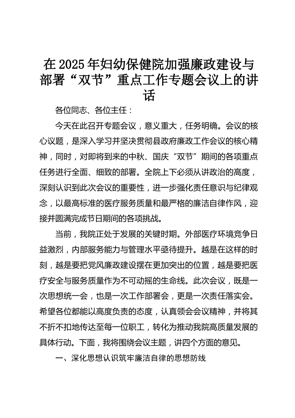 在2025年婦幼保健院加強(qiáng)廉政建設(shè)與部署“雙節(jié)”重點(diǎn)工作專題會(huì)議上的講話