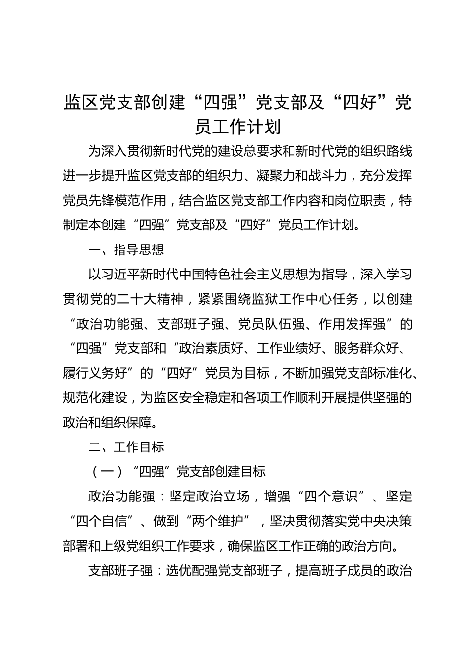 監(jiān)區(qū)黨支部創(chuàng)建“四強”黨支部及“四好”黨員工作計劃