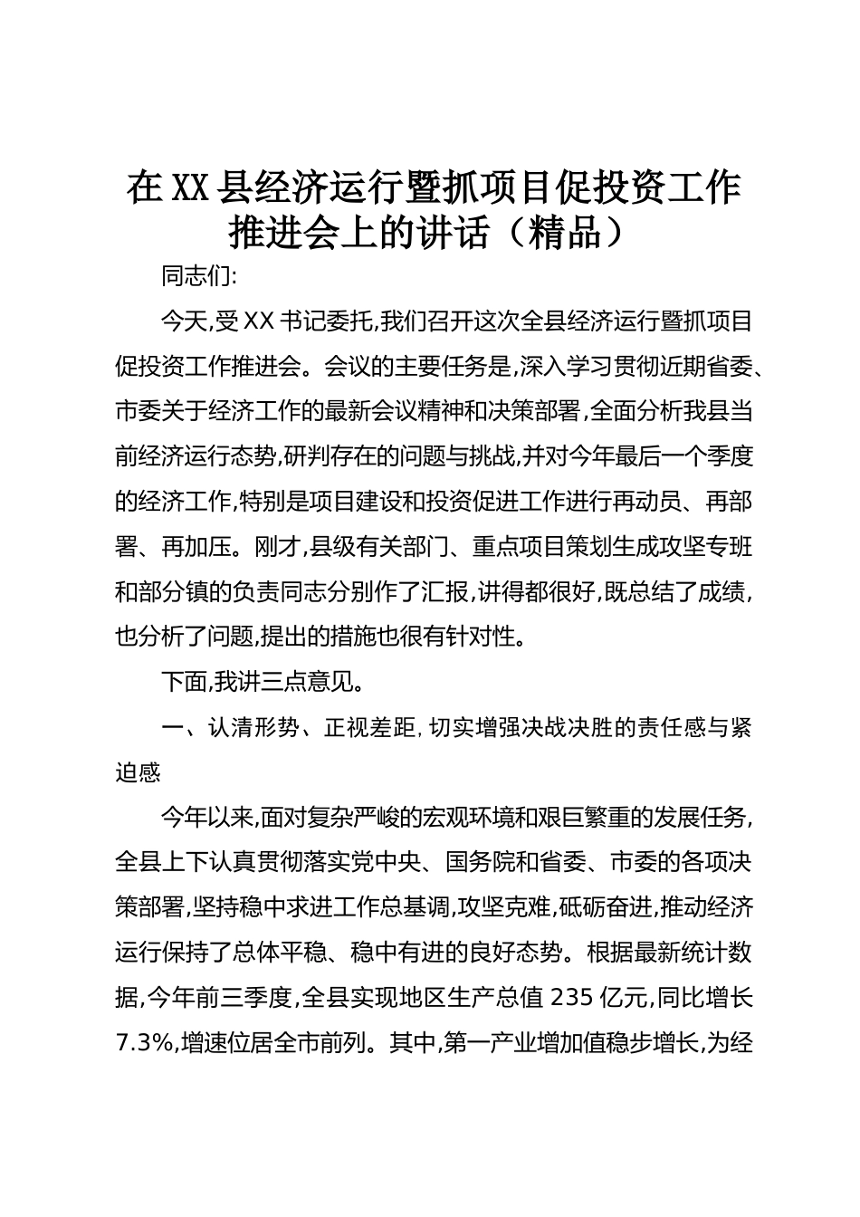 在XX縣經(jīng)濟(jì)運(yùn)行暨抓項(xiàng)目促投資工作推進(jìn)會(huì)上的講話(精品)