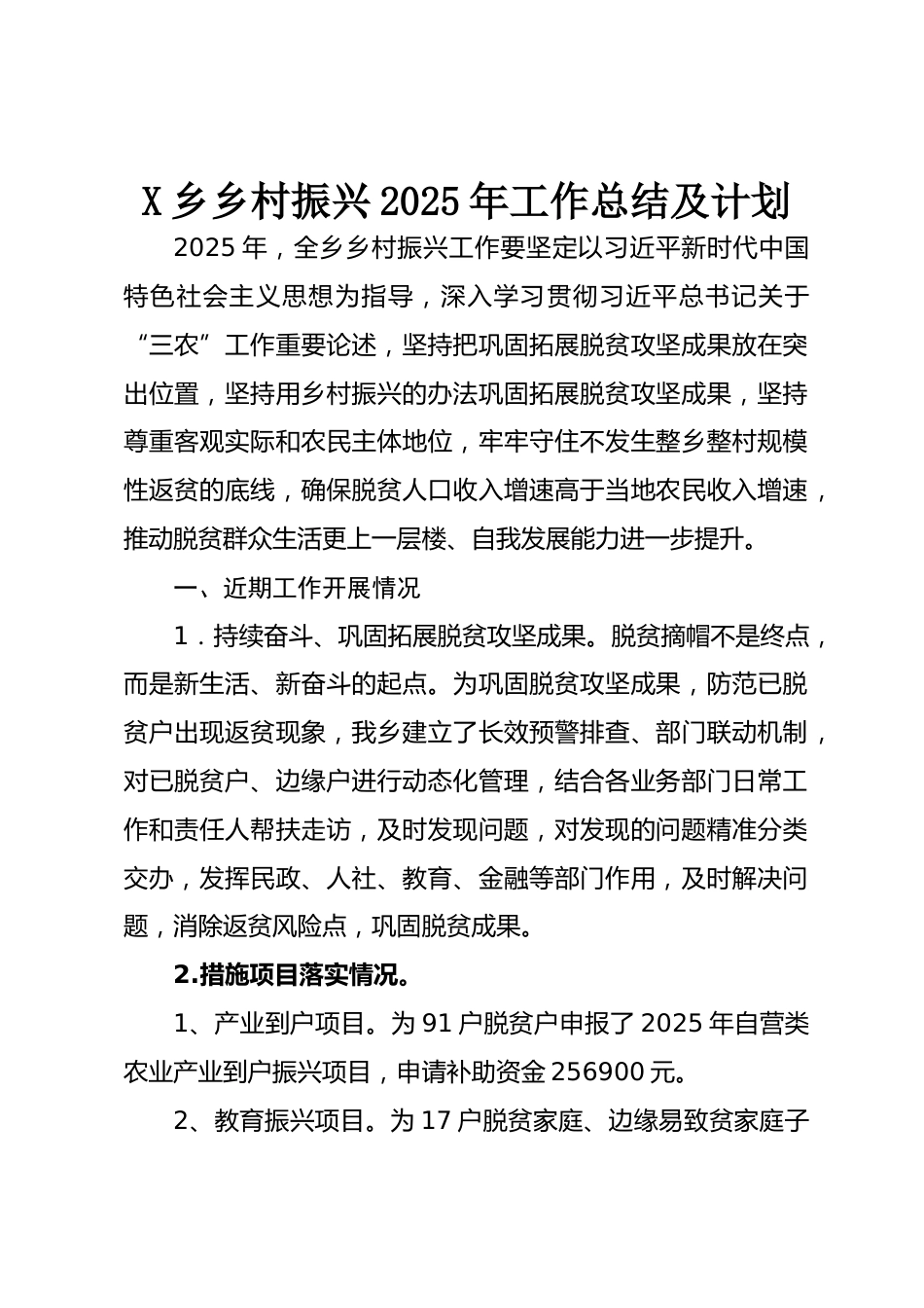 X鄉(xiāng)鄉(xiāng)村振興2025年工作總結(jié)及計(jì)劃