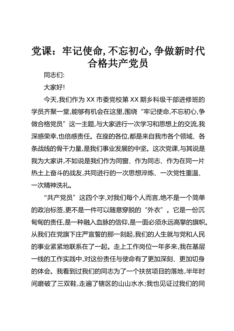 黨課:牢記使命,不忘初心,爭(zhēng)做新時(shí)代合格共產(chǎn)黨員同志們:大家好!今天,我們作為XX市委黨校第XX期鄉(xiāng)科級(jí)干部進(jìn)修班的學(xué)員齊聚一堂,能夠有機(jī)會(huì)在這里,圍繞“牢記使命,不忘初心,爭(zhēng)做合格黨員”這一主題,與大家進(jìn)行一次學(xué)習(xí)和思想上的交流,我深感榮幸,也倍感責(zé)任。在座的各位,都是來(lái)自我市各個(gè)領(lǐng)域、各條戰(zhàn)線的骨干力量,是我們事業(yè)發(fā)展的中堅(jiān)。這次黨課,與其說(shuō)是我為大家講,不如說(shuō)是我們作為同窗、作為同志、作為在同一片熱土上奮斗的戰(zhàn)友,共同進(jìn)行的一次思想淬煉、一次黨性重溫、一次精神洗禮。“共產(chǎn)黨員”這四個(gè)字,對(duì)我們每個(gè)人而言,絕不是一個(gè)簡(jiǎn)單的政治標(biāo)簽,更不是一件可...