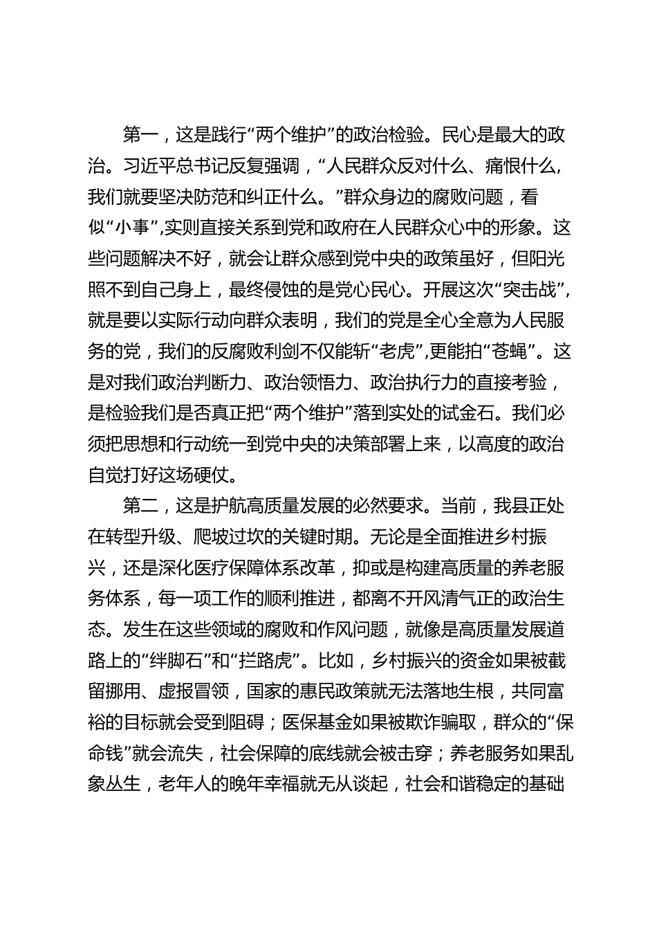 在2025年縣紀(jì)委監(jiān)委群眾身邊不正之風(fēng)和腐敗問題集中整治“突擊戰(zhàn)”工作部署會(huì)上的講話