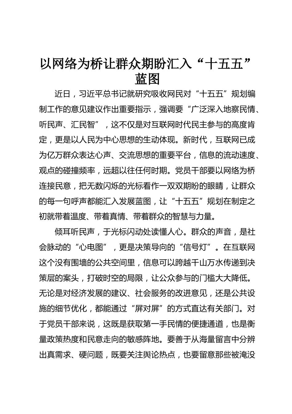 以網(wǎng)絡(luò)為橋讓群眾期盼匯入“十五五”藍(lán)圖