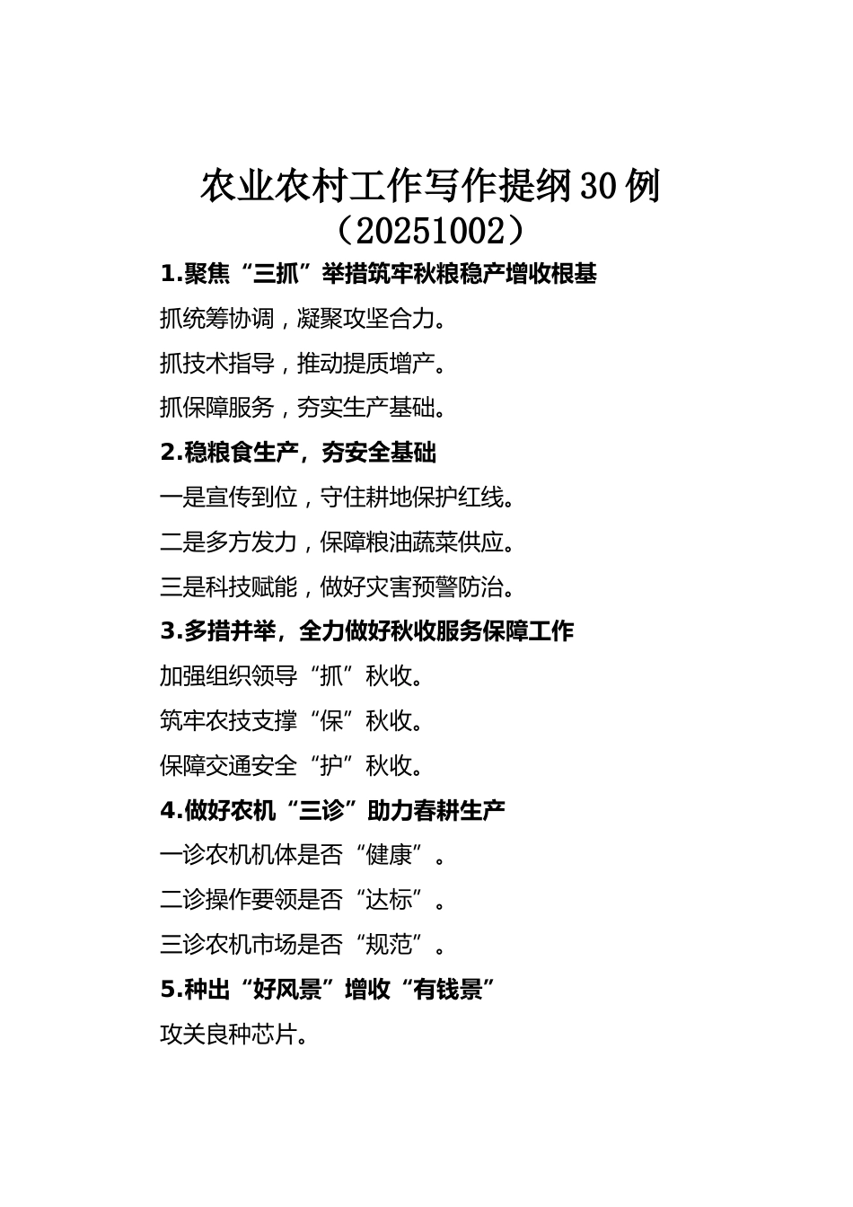 農(nóng)業(yè)農(nóng)村工作寫作提綱30例(20251002)VIP免費