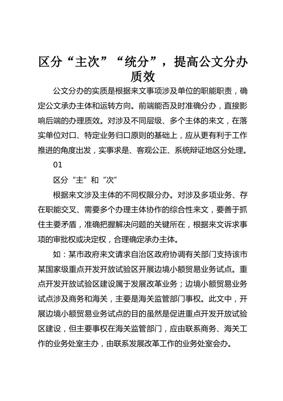 區(qū)分“主次”“統(tǒng)分”,提高公文分辦質(zhì)效