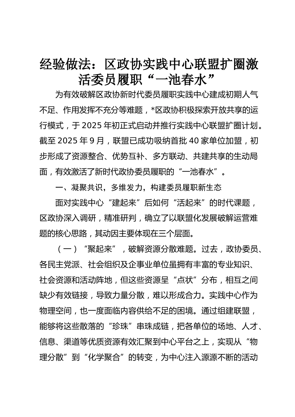 經(jīng)驗(yàn)做法:區(qū)政協(xié)實(shí)踐中心聯(lián)盟擴(kuò)圈激活委員履職“一池春水”VIP免費(fèi)