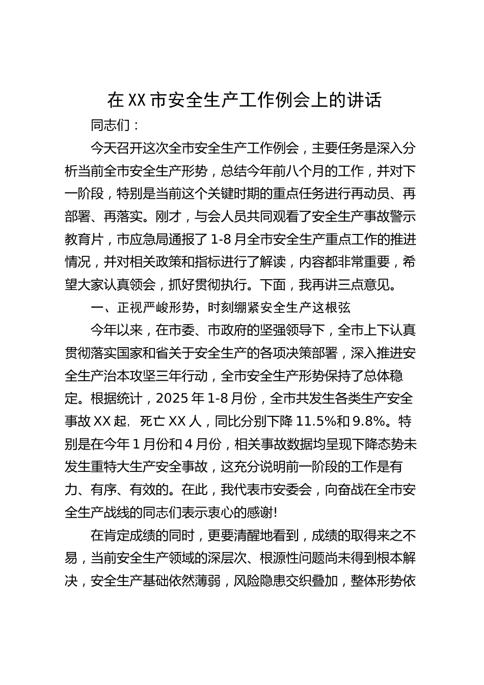 在2025年市安全生產(chǎn)工作例會(huì)上的講話