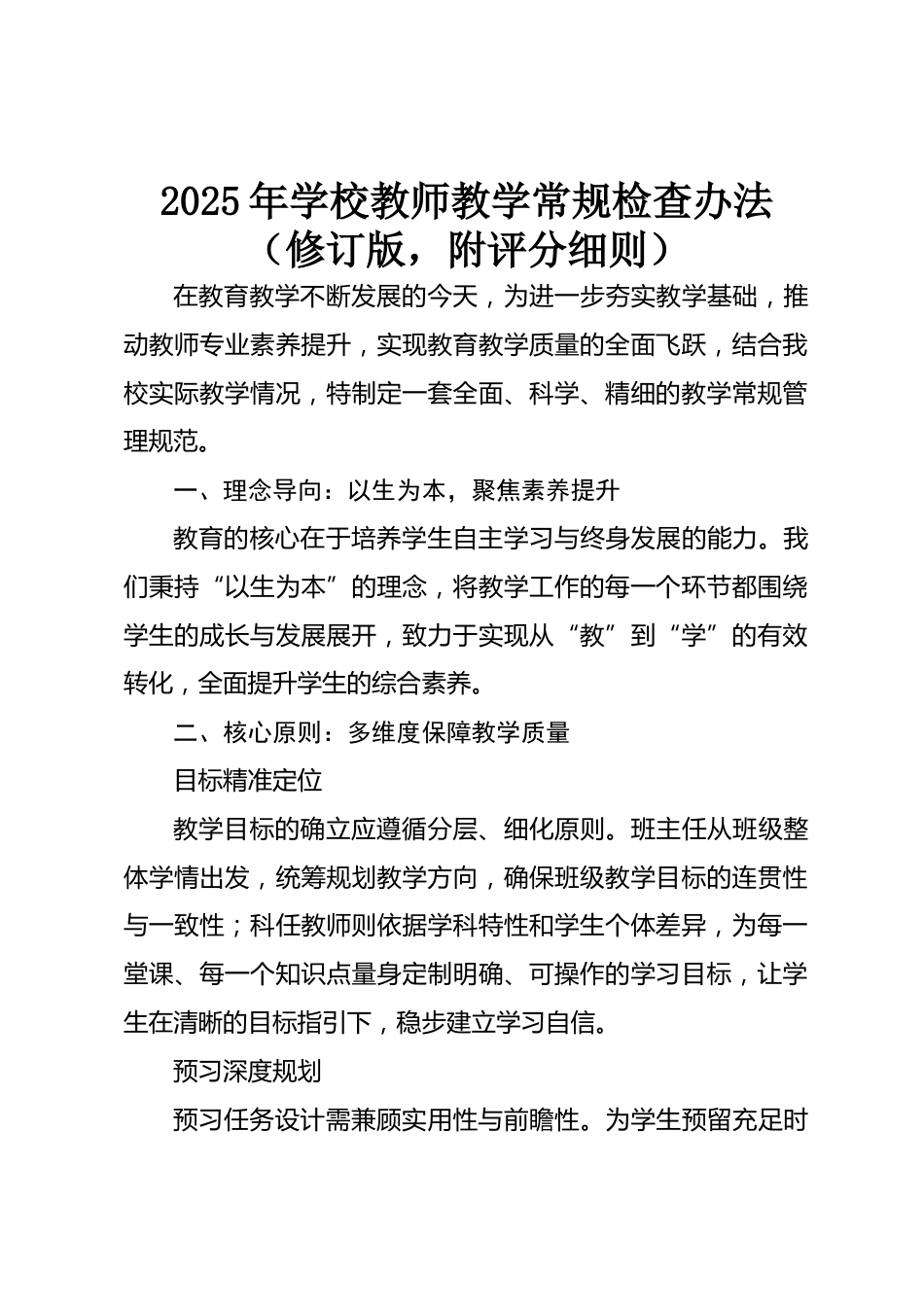 2025年學(xué)校教師教學(xué)常規(guī)檢查辦法(修訂版,附評分細(xì)則)