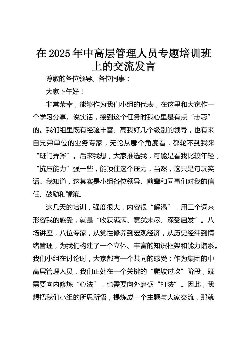 在2025年中高層管理人員專題培訓(xùn)班上的交流發(fā)言