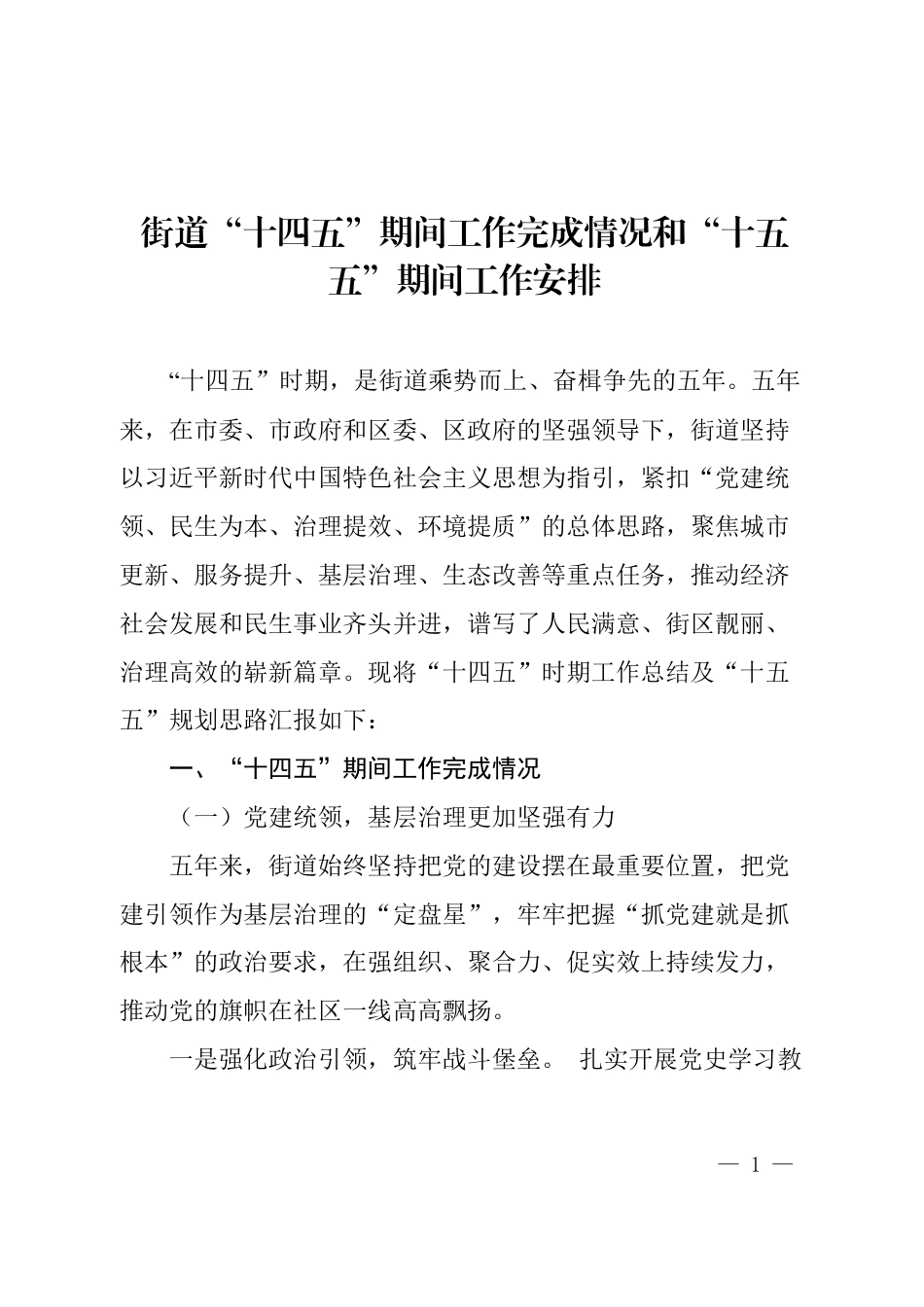 2025年街道“十四五”期間工作完成情況和“十五五”期間工作安排