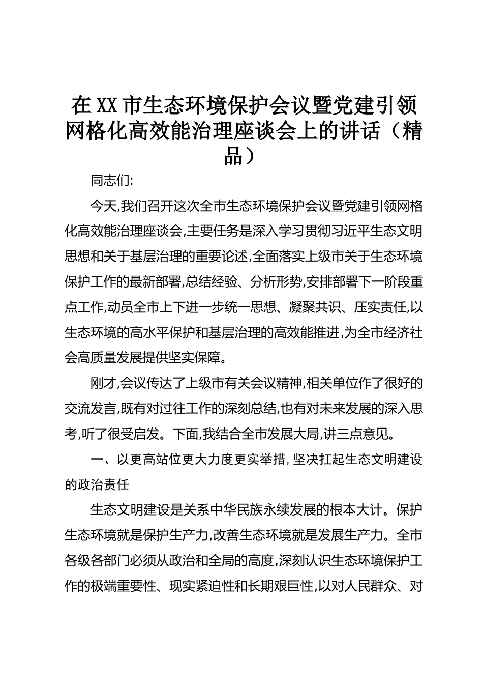 在XX市生態(tài)環(huán)境保護會議暨黨建引領(lǐng)網(wǎng)格化高效能治理座談會上的講話(精品)
