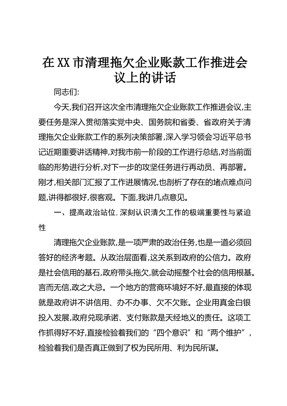 在XX市清理拖欠企業(yè)賬款工作推進(jìn)會(huì)議上的講話VIP免費(fèi)