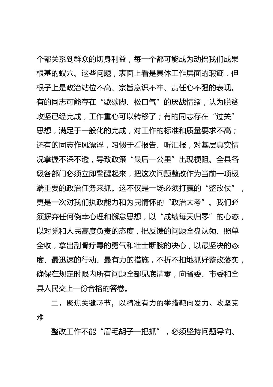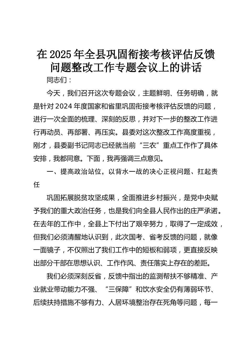 在2025年全縣鞏固銜接考核評估反饋問題整改工作專題會議上的講話