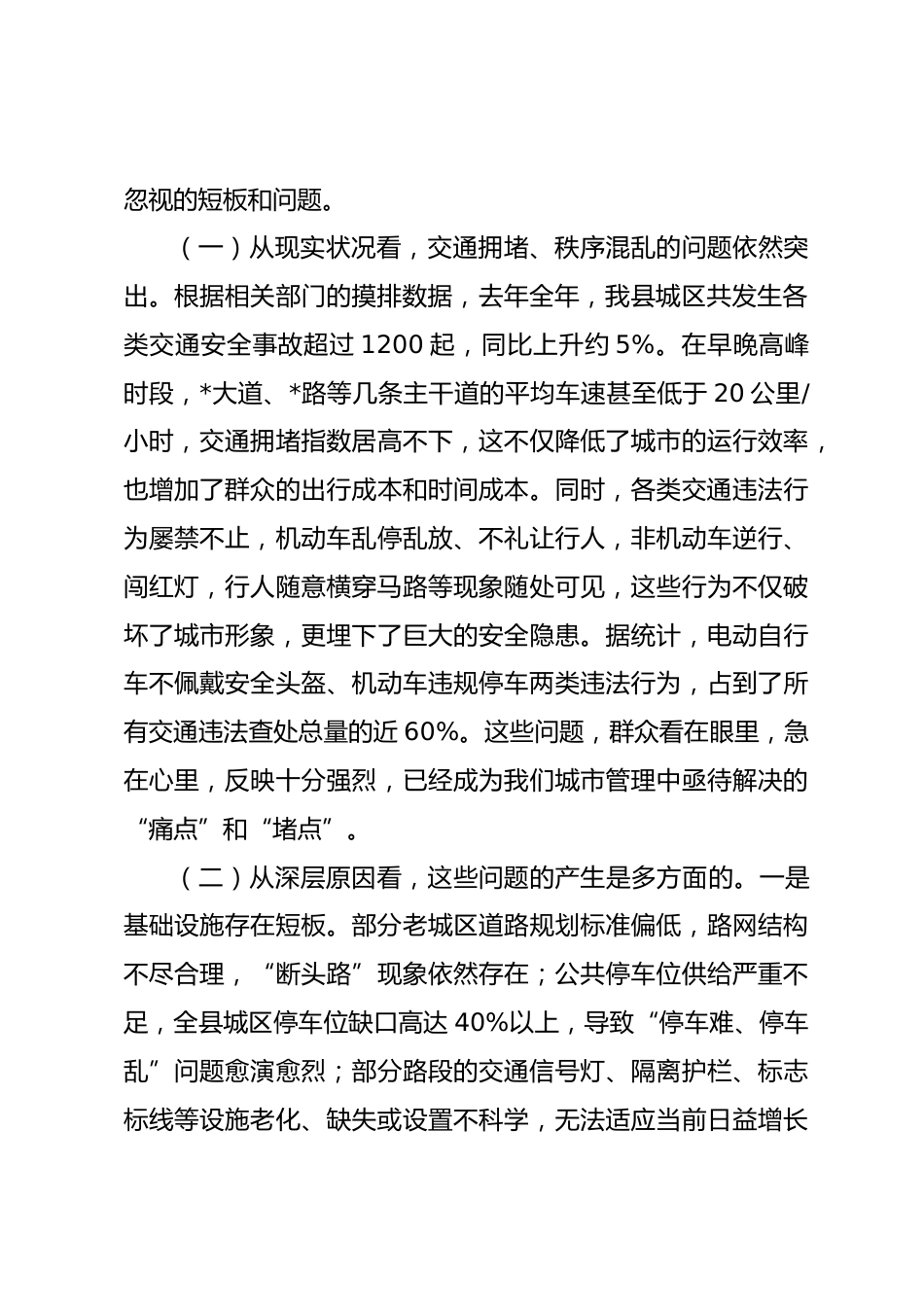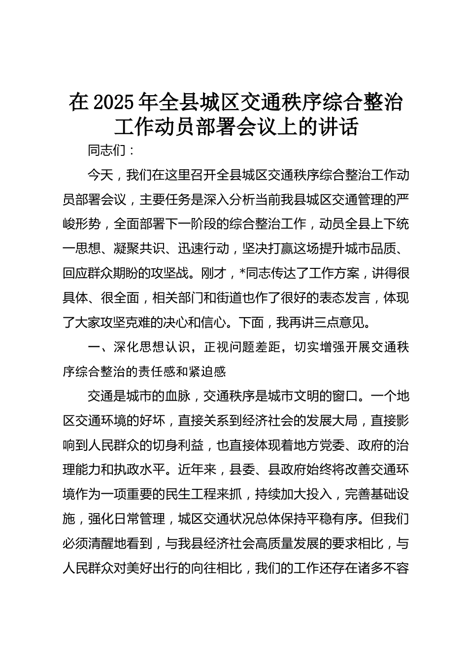 在2025年全縣城區(qū)交通秩序綜合整治工作動員部署會議上的講話
