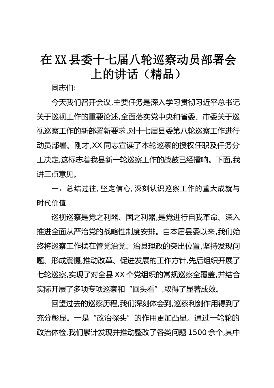 在XX縣委十七屆八輪巡察動員部署會上的講話(精品)VIP免費(fèi)