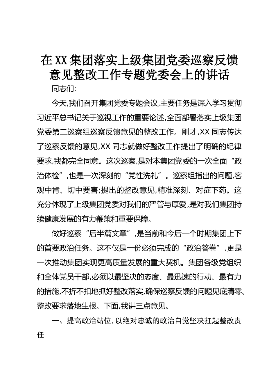 在XX集團(tuán)落實(shí)上級集團(tuán)黨委巡察反饋意見整改工作專題黨委會上的講話