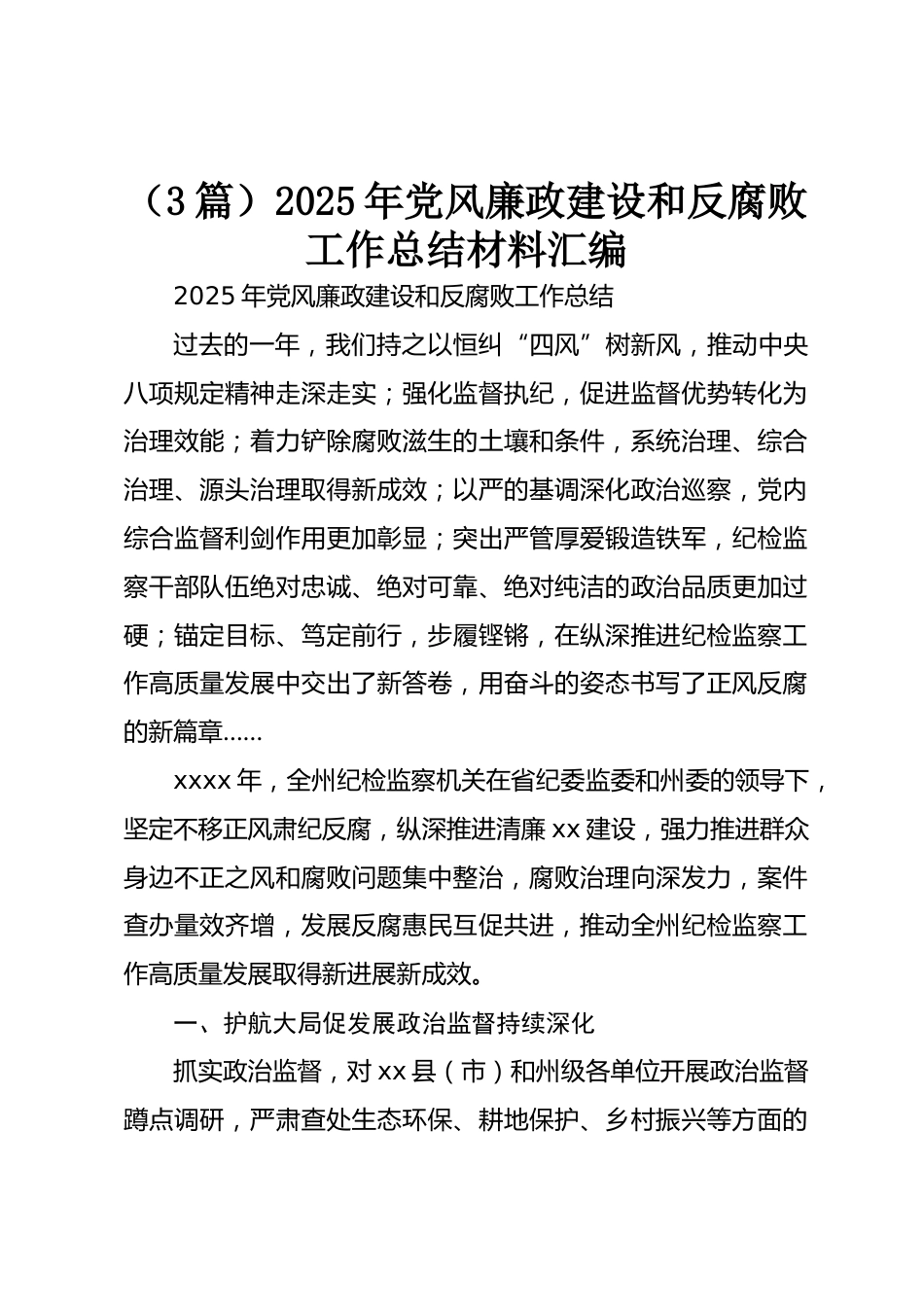 (3篇)2025年黨風廉政建設和反腐敗工作總結材料匯編