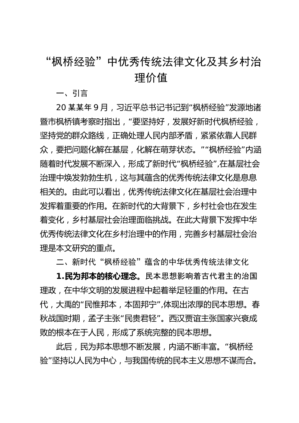 “楓橋經(jīng)驗”中優(yōu)秀傳統(tǒng)法律文化及其鄉(xiāng)村治理價值