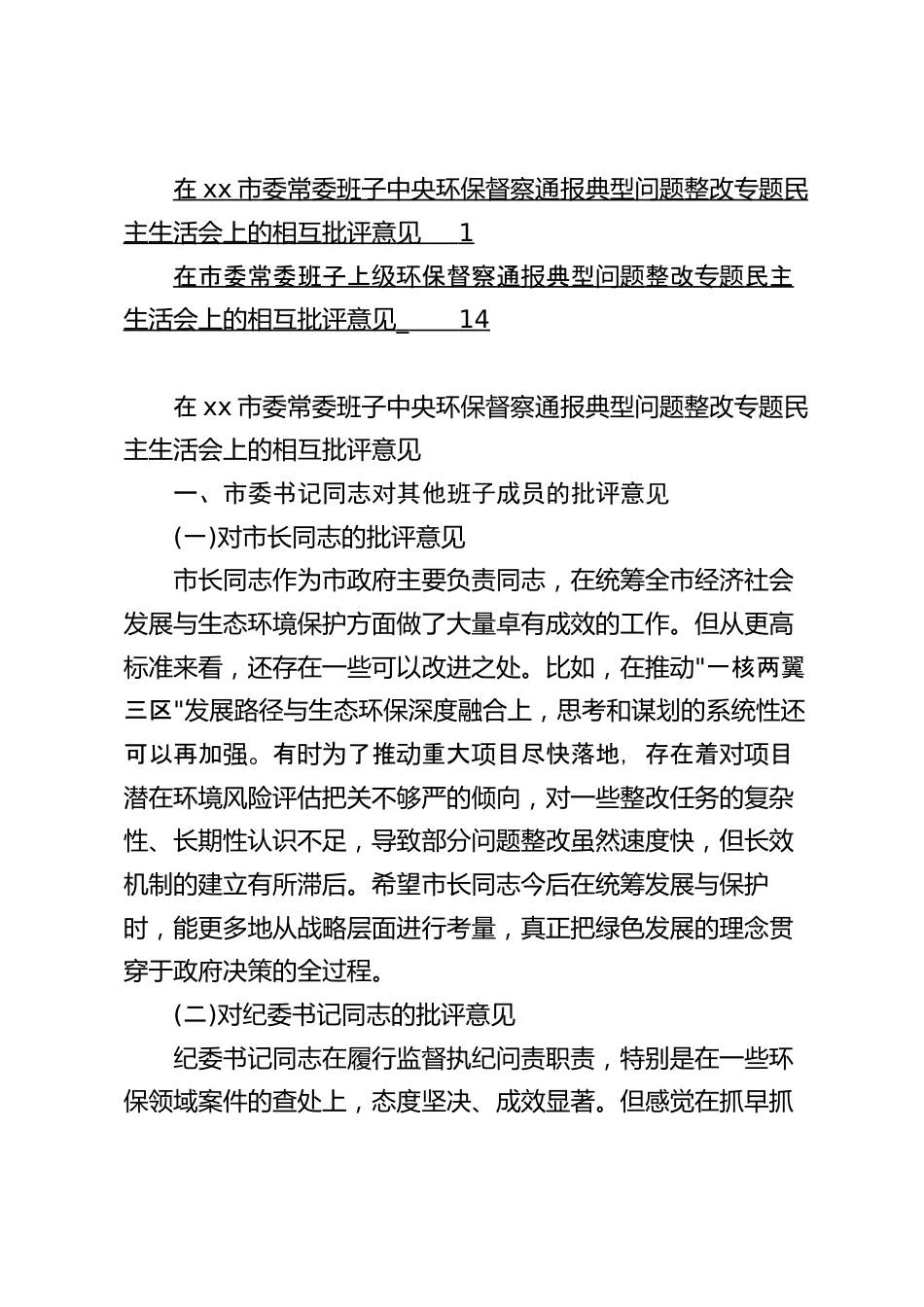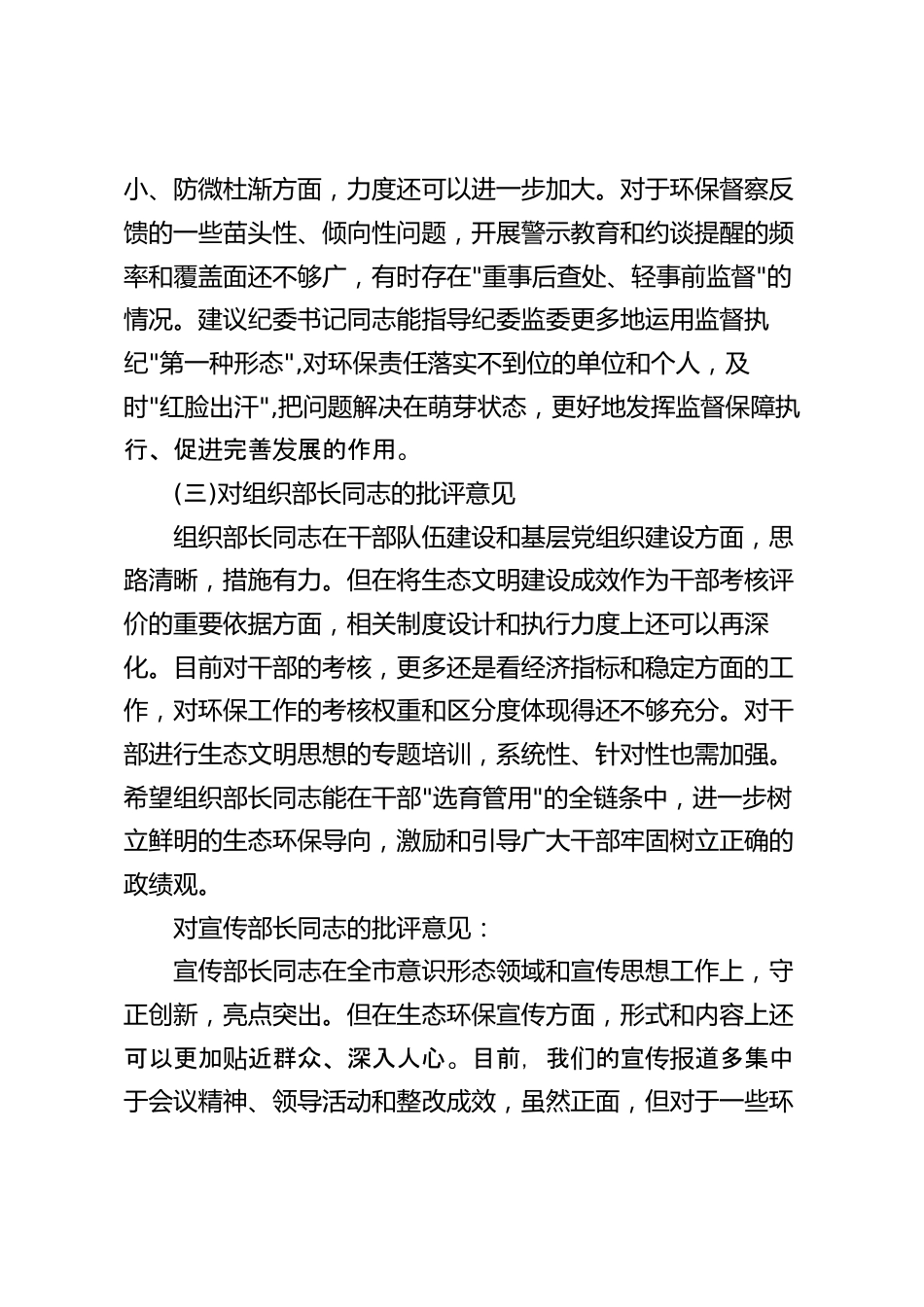 2篇 2025年在市委常委班子上級環(huán)保督察通報典型問題整改專題民主生活會上的相互批評意見