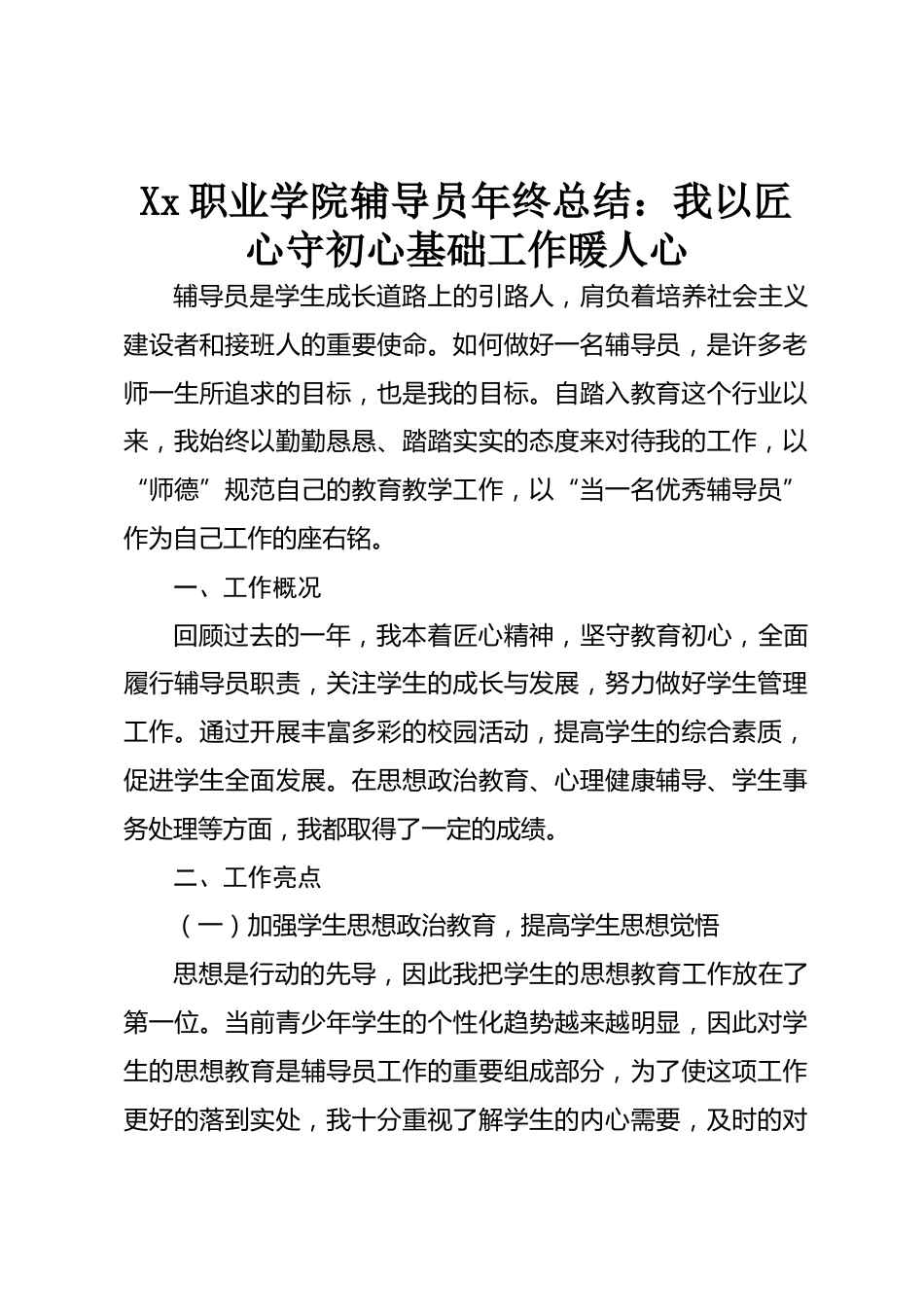 Xx職業(yè)學院輔導員年終總結:我以匠心守初心 基礎工作暖人心