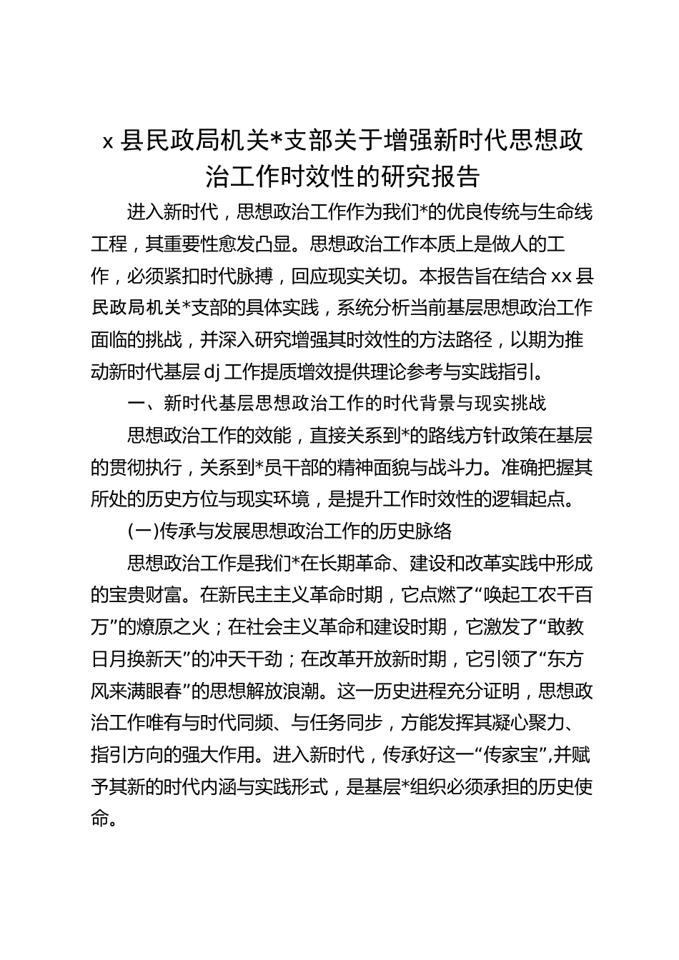 X縣民政局機關(guān)黨支部關(guān)于增強新時代思想政治工作時效性的研究報告