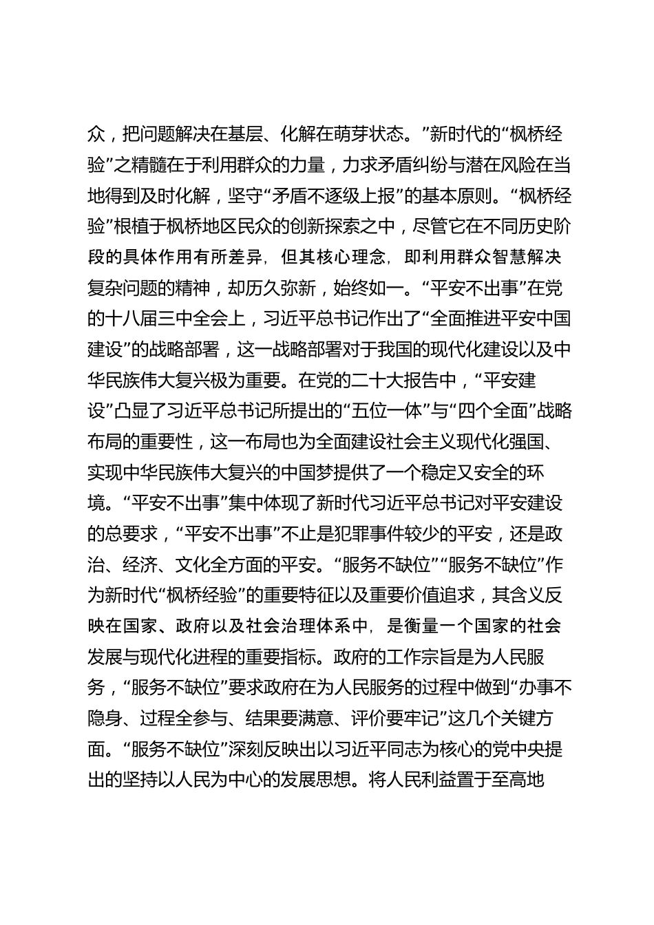 楓橋經(jīng)驗(yàn):基層治理現(xiàn)代化的中國實(shí)踐“”在社會主義建設(shè)初期,楓橋經(jīng)驗(yàn)形成。20世紀(jì)60年代初,在黨的科學(xué)指導(dǎo)下,浙江省諸暨市楓橋鎮(zhèn)的干部與群眾,通過深入細(xì)致的思想工作,創(chuàng)新性地引導(dǎo)不同社會群體積極參“與到社會主義建設(shè)中來,形成了以注重教育引導(dǎo),保證基層治”“”安,矛盾內(nèi)部調(diào)節(jié)為特點(diǎn)的楓橋經(jīng)驗(yàn)。這一經(jīng)驗(yàn)不僅是基層社會治理領(lǐng)域內(nèi)一次生動而深入的實(shí)踐嘗試,也是黨的基層社會治理理論、運(yùn)作方式及領(lǐng)導(dǎo)智慧的高度凝結(jié)。自黨的十八大“”召開以來,新時(shí)代的楓橋經(jīng)驗(yàn)應(yīng)運(yùn)而生,并在堅(jiān)持實(shí)事求是、強(qiáng)化系統(tǒng)觀念、堅(jiān)守歷史唯物主義等理論精髓的指引下,持續(xù)不斷...