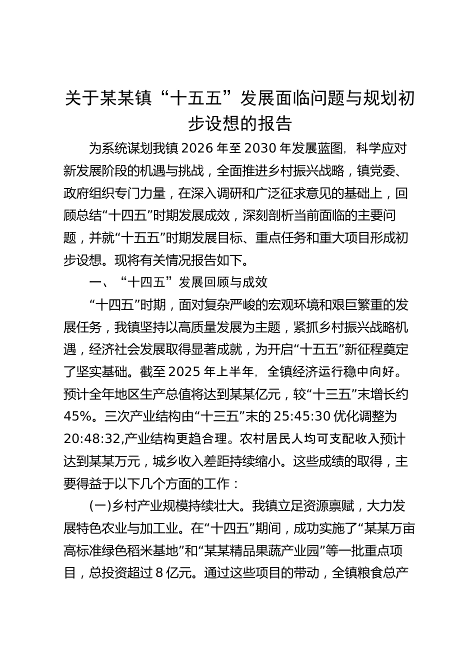 關(guān)于某某鎮(zhèn)“十五五”發(fā)展面臨問(wèn)題與規(guī)劃初步設(shè)想的報(bào)告VIP免費(fèi)