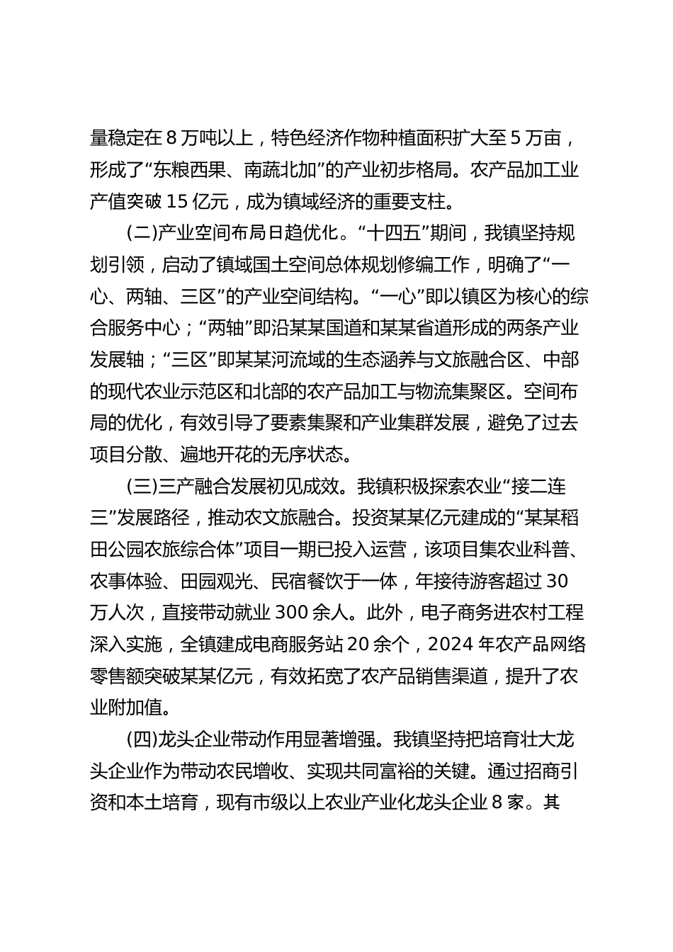 關(guān)于某某鎮(zhèn)“十五五”發(fā)展面臨問(wèn)題與規(guī)劃初步設(shè)想的報(bào)告為系統(tǒng)謀劃我鎮(zhèn)2026年至2030年展,科學(xué)發(fā)藍(lán)圖應(yīng)對(duì)新發(fā)展階段的機(jī)遇與挑戰(zhàn),全面推進(jìn)鄉(xiāng)村振興戰(zhàn)略,鎮(zhèn)黨委、政府組織專(zhuān)門(mén)力量,在深入調(diào)研和廣泛征求意見(jiàn)的基礎(chǔ)上,回“”顧總結(jié)十四五時(shí)期發(fā)展成效,深刻剖析當(dāng)前面臨的主要問(wèn)“”題,并就十五五時(shí)期發(fā)展目標(biāo)、重點(diǎn)任務(wù)和重大項(xiàng)目形成初步設(shè)想。現(xiàn)將有關(guān)情況報(bào)告如下。一、“十四五”發(fā)展回顧與成效“”十四五時(shí)期,面對(duì)復(fù)雜嚴(yán)峻的宏觀(guān)環(huán)境和艱巨繁重的發(fā)展任務(wù),我鎮(zhèn)堅(jiān)持以高質(zhì)量發(fā)展為主題,緊抓鄉(xiāng)村振興戰(zhàn)略機(jī)“”遇,經(jīng)濟(jì)社會(huì)發(fā)展取得顯著成就,為開(kāi)啟十五五新征...