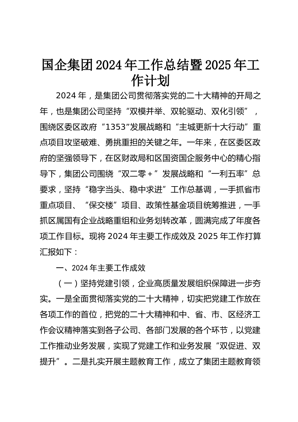 國(guó)企集團(tuán)2024年工作總結(jié)暨2025年工作計(jì)劃