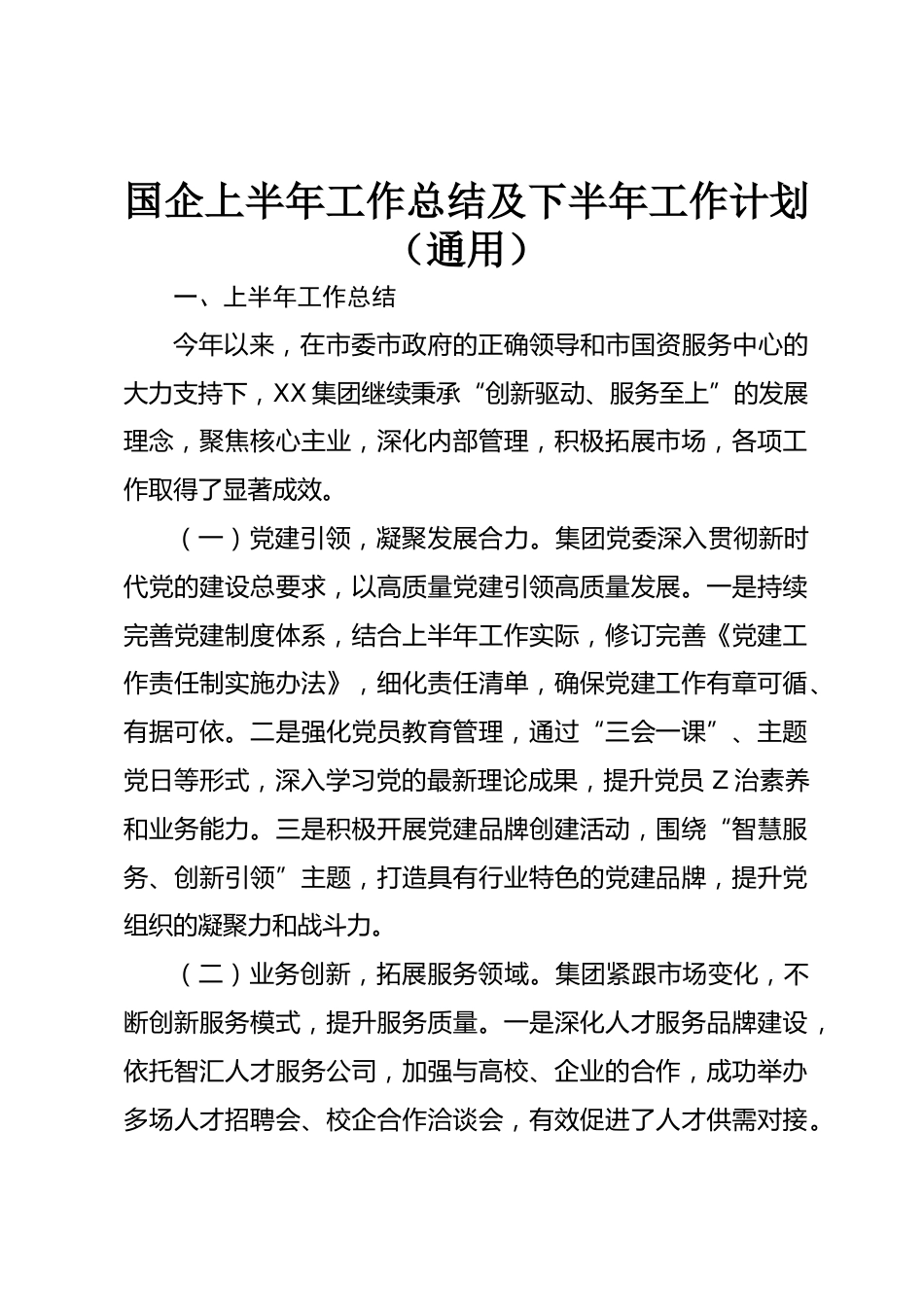 國企上半年工作總結(jié)及下半年工作計(jì)劃(通用)
