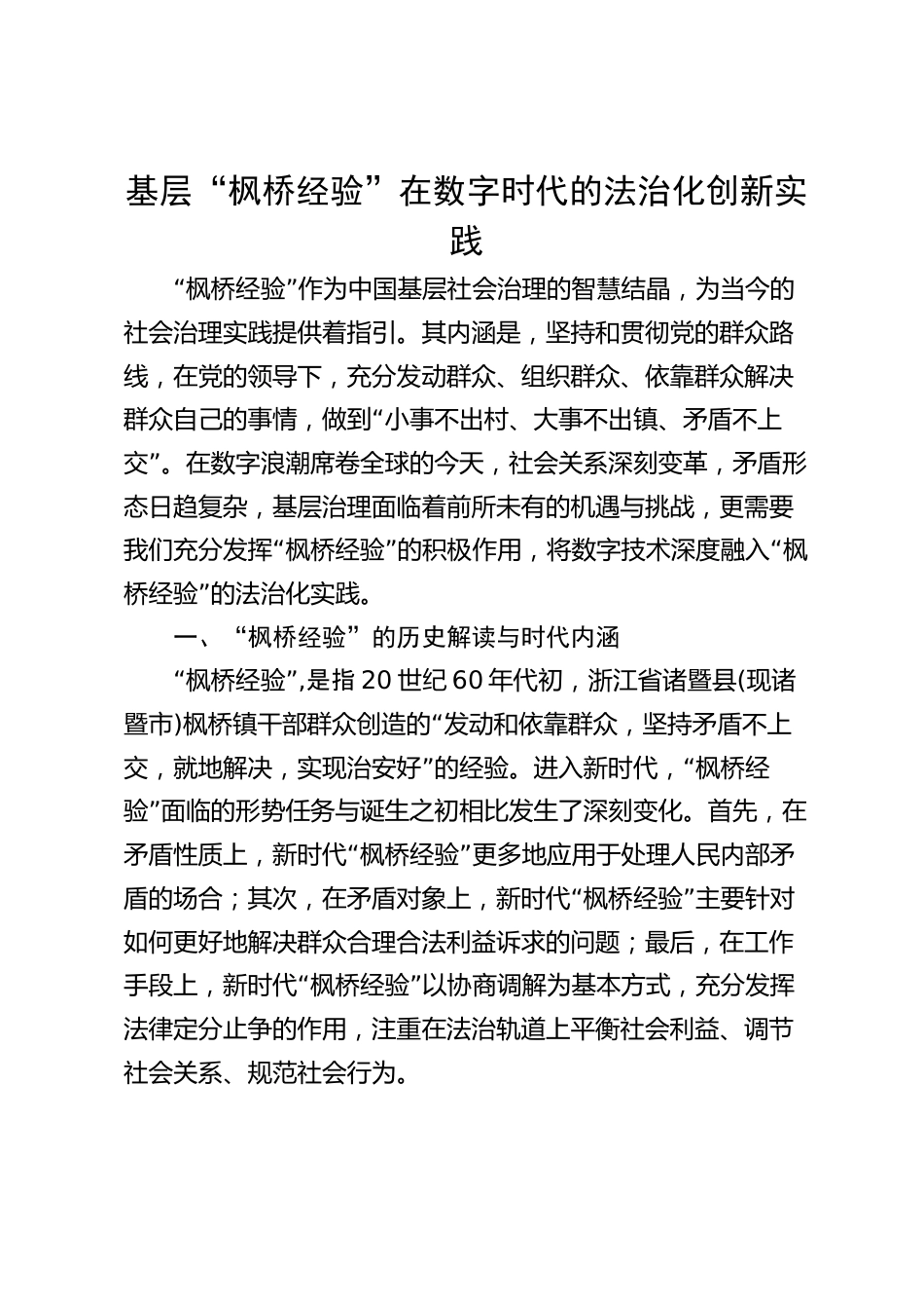 基層“楓橋經(jīng)驗(yàn)”在數(shù)字時(shí)代的法治化創(chuàng)新實(shí)踐