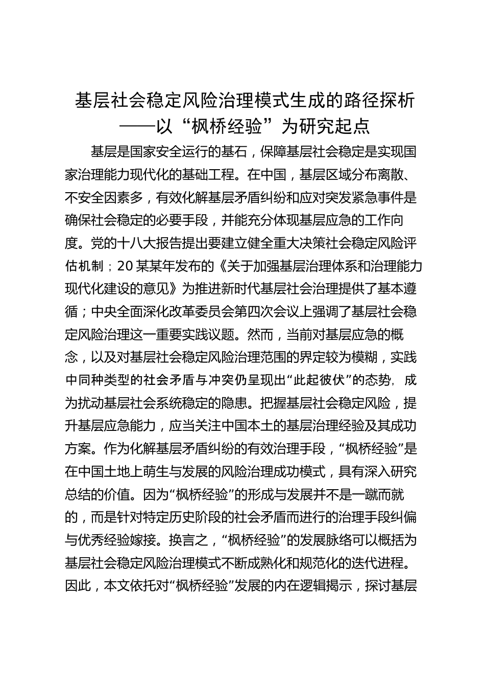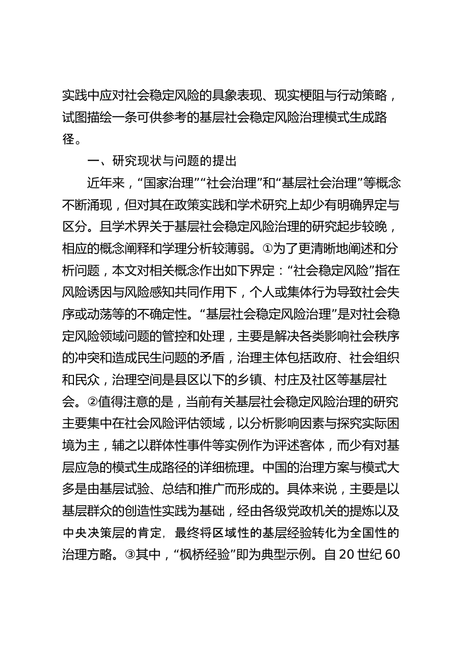 基層社會(huì)穩(wěn)定風(fēng)險(xiǎn)治理模式生成的路徑探析——以“楓橋經(jīng)驗(yàn)”為研究起點(diǎn)VIP免費(fèi)