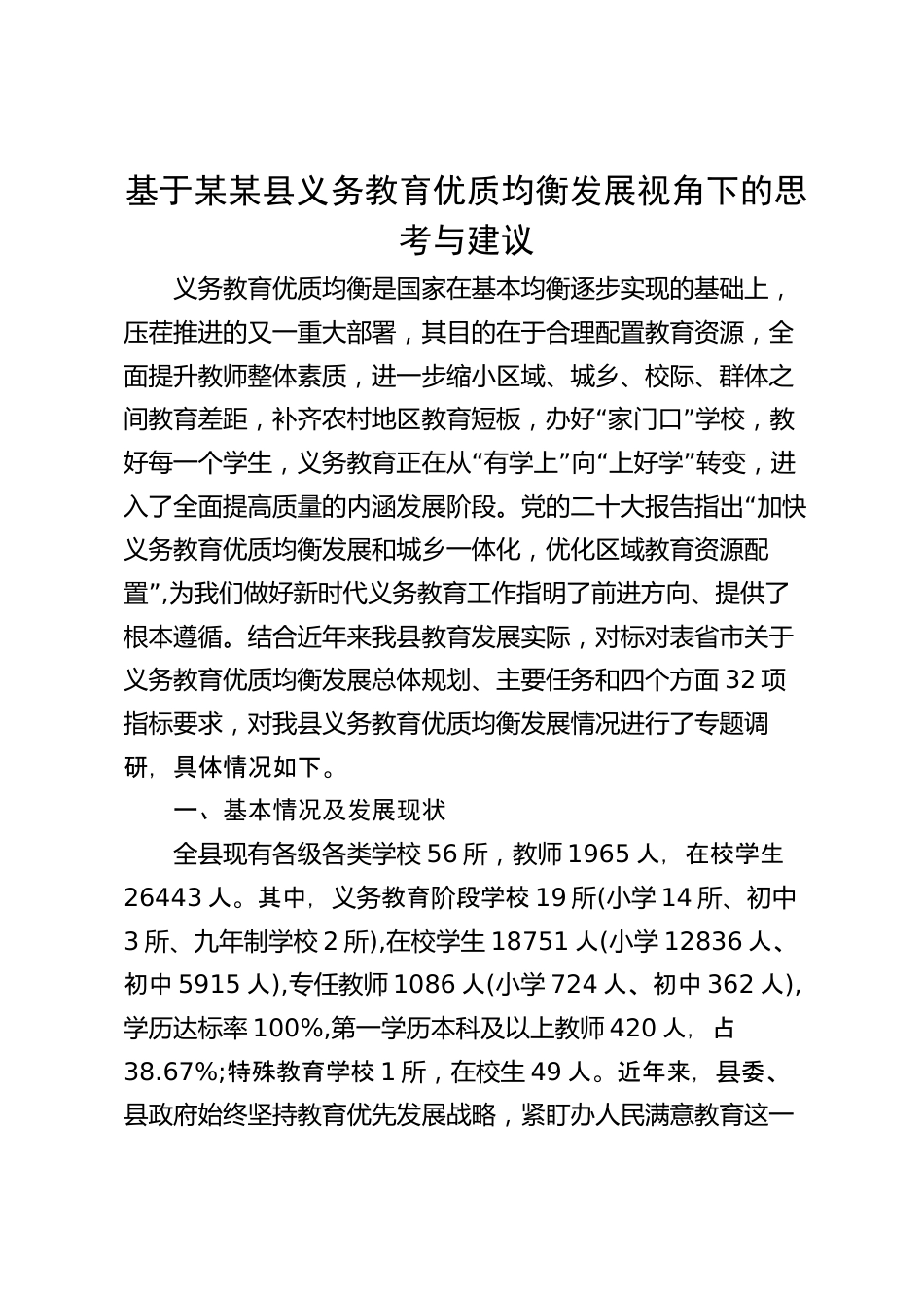 基于某某縣義務(wù)教育優(yōu)質(zhì)均衡發(fā)展視角下的思考與建議