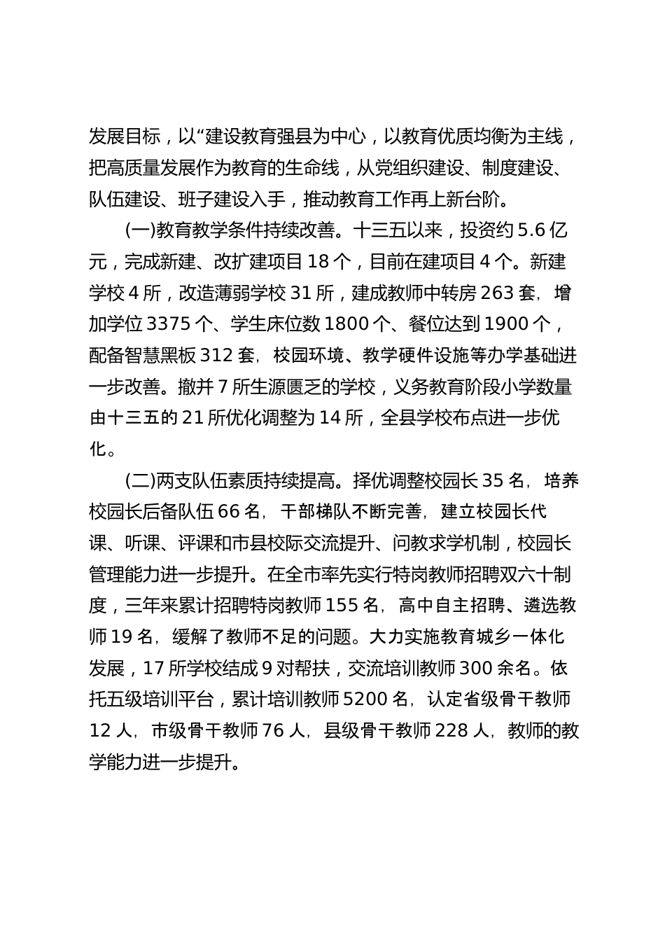 基于某某縣義務(wù)教育優(yōu)質(zhì)均衡發(fā)展視角下的思考與建議義務(wù)教育優(yōu)質(zhì)均衡是國家在基本均衡逐步實(shí)現(xiàn)的基礎(chǔ)上,壓茬推進(jìn)的又一重大部署,其目的在于合理配置教育資源,全面提升教師整體素質(zhì),進(jìn)一步縮小區(qū)域、城鄉(xiāng)、校際、群體之“”間教育差距,補(bǔ)齊農(nóng)村地區(qū)教育短板,辦好家門口學(xué)校,教“”“”好每一個學(xué)生,義務(wù)教育正在從有學(xué)上向上好學(xué)轉(zhuǎn)變,進(jìn)“入了全面提高質(zhì)量的內(nèi)涵發(fā)展階段。黨的二十大報(bào)告指出加快義務(wù)教育優(yōu)質(zhì)均衡發(fā)展和城鄉(xiāng)一體化,優(yōu)化區(qū)域教育資源配”置,為我們做好新時代義務(wù)教育工作指明了前進(jìn)方向、提供了根本遵循。結(jié)合近年來我縣教育發(fā)展實(shí)際,對標(biāo)對表...