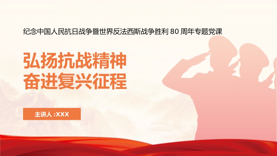 紀念中國人民抗日戰(zhàn)爭暨世界反法西斯戰(zhàn)爭勝利80周年專題黨課PPT:弘揚抗戰(zhàn)精神,奮進復(fù)興征程