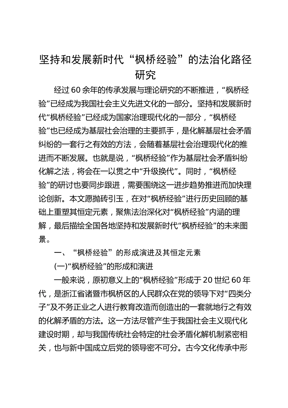 堅(jiān)持和發(fā)展新時代“楓橋經(jīng)驗(yàn)”的法治化路徑研究