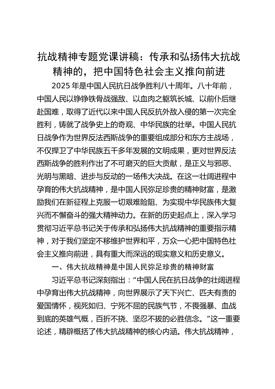 抗戰(zhàn)精神專題黨課講稿:傳承和弘揚(yáng)偉大抗戰(zhàn)精神的,把中國(guó)特色社會(huì)主義推向前進(jìn)