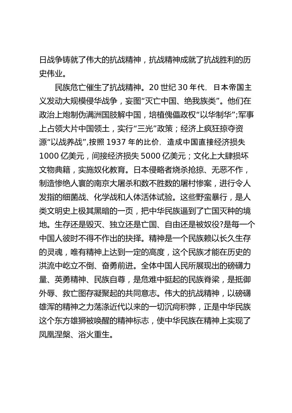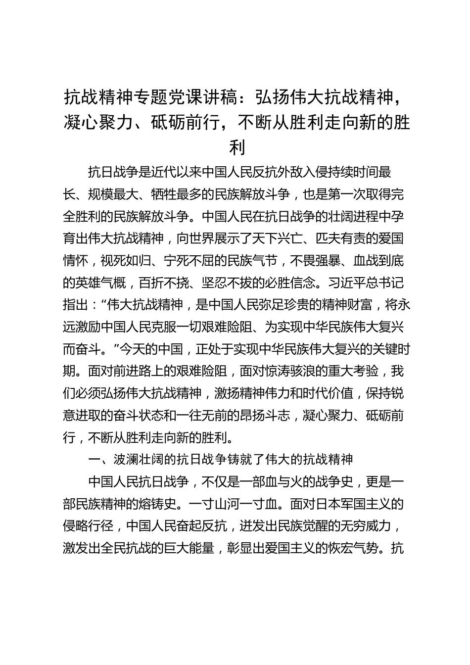 抗戰(zhàn)精神專題黨課講稿:弘揚(yáng)偉大抗戰(zhàn)精神,凝心聚力、砥礪前行,不斷從勝利走向新的勝利