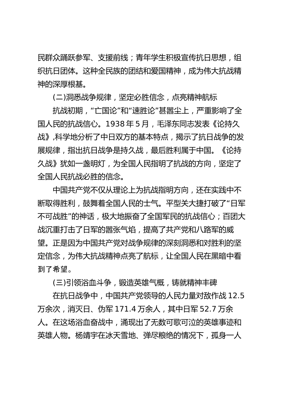 抗戰(zhàn)精神專題黨課講稿:回顧烽火歲月,傳承與弘揚(yáng)偉大抗戰(zhàn)精神