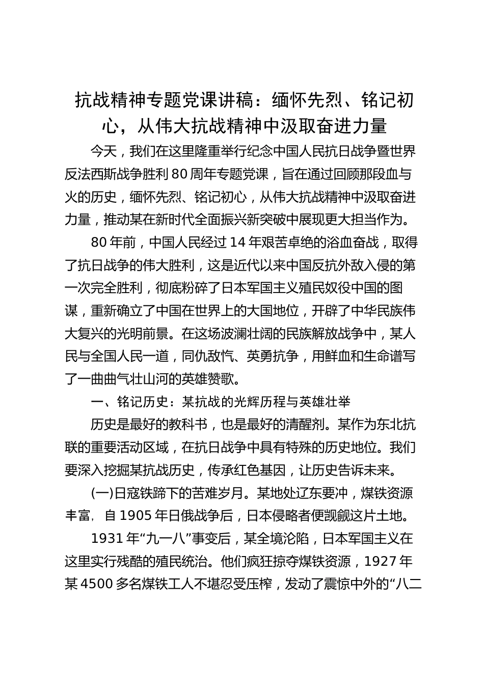 抗戰(zhàn)精神專題黨課講稿:緬懷先烈、銘記初心,從偉大抗戰(zhàn)精神中汲取奮進(jìn)力量