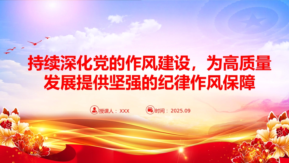 廉政黨課PPT:持續(xù)深化黨的作風建設,為高質量發(fā)展提供堅強的紀律作風保障(PPT)