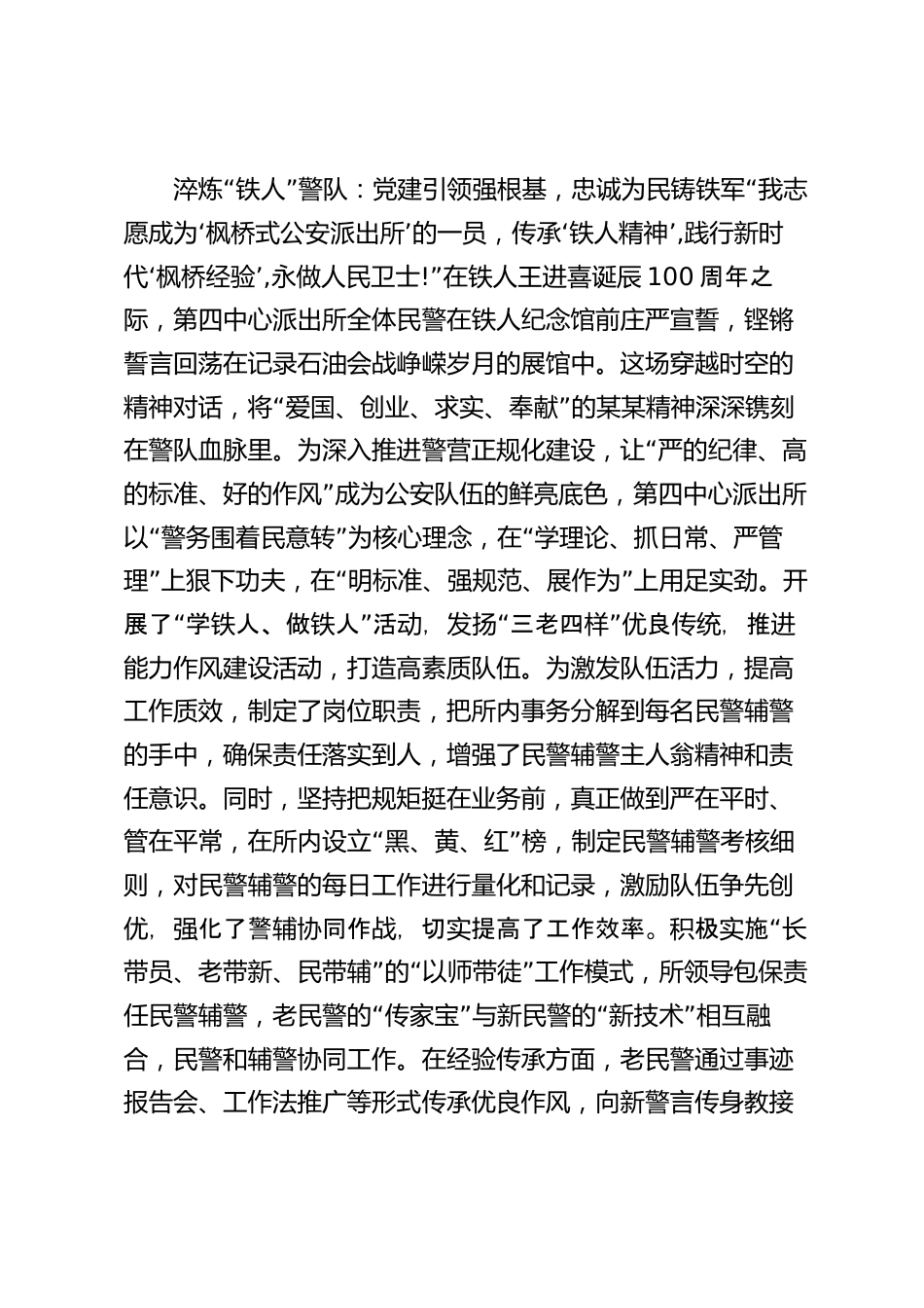 某某派出所經(jīng)驗交流材料:“鐵人精神”鑄警魂“楓橋經(jīng)驗”繪平安