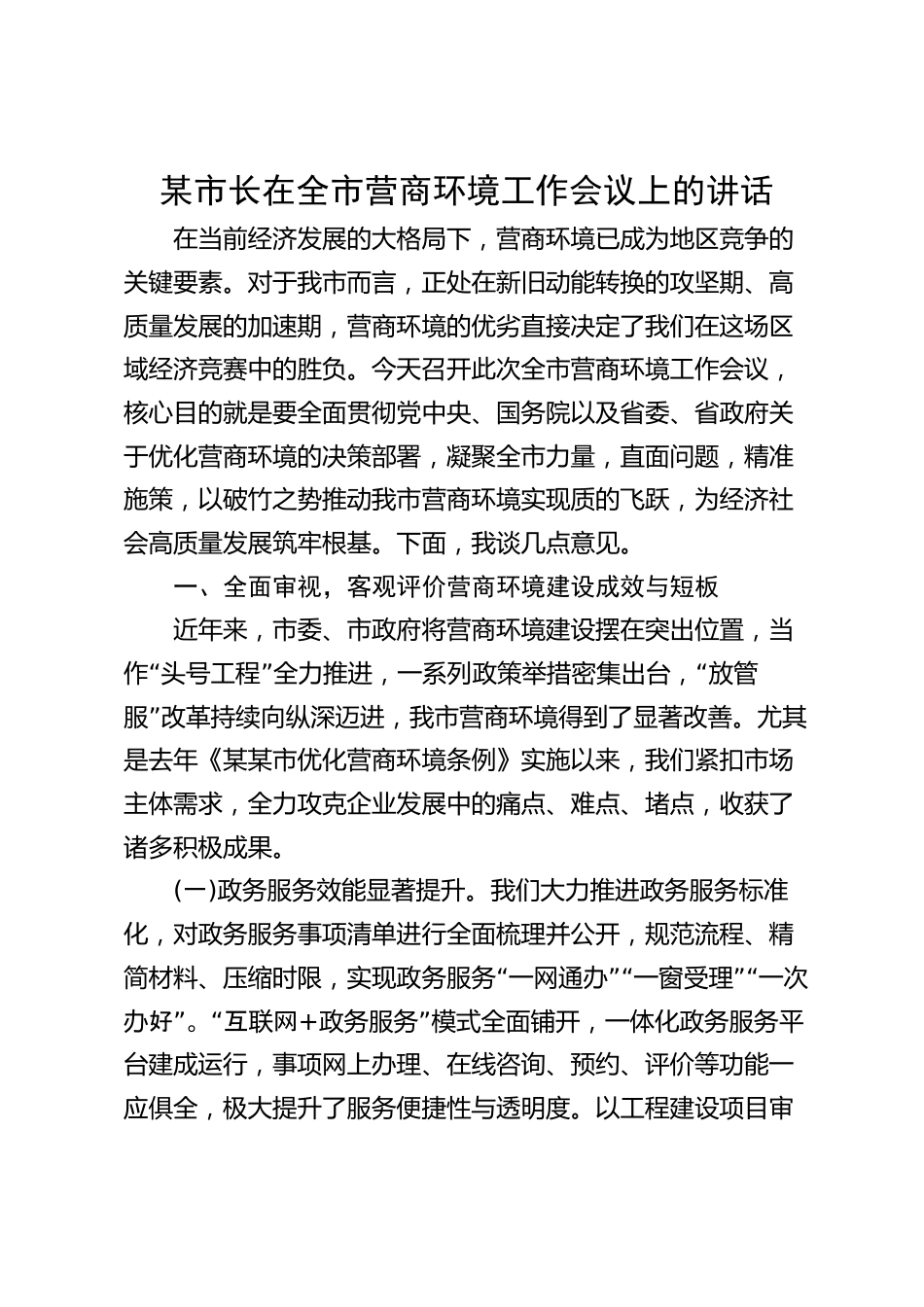 某市長在全市營商環(huán)境工作會議上的講話VIP免費
