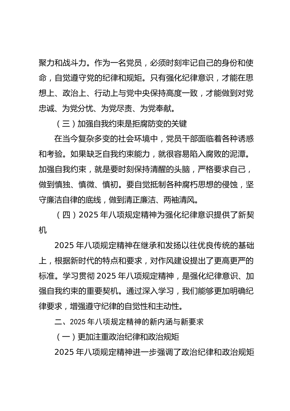 強(qiáng)化紀(jì)律意識,加強(qiáng)自我約束——2025年八項(xiàng)規(guī)定精神學(xué)習(xí)教育專題黨課講稿