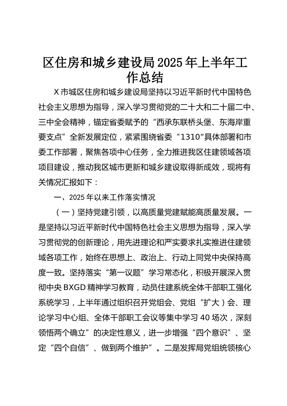 區(qū)住房和城鄉(xiāng)建設(shè)局2025年上半年工作總結(jié)