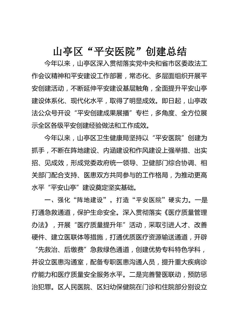 山亭區(qū)“平安醫(yī)院”創(chuàng)建總結(jié)