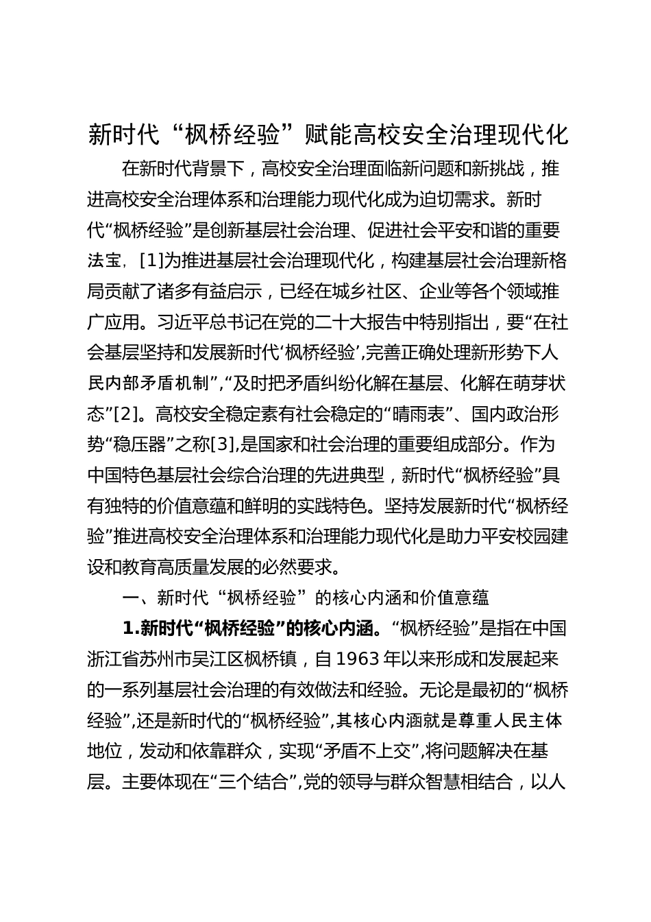 新時(shí)代“楓橋經(jīng)驗(yàn)”賦能高校安全治理現(xiàn)代化